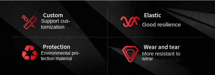 Aging resistance,ozone resistance, oil resistance,tears and abrasions resistance |