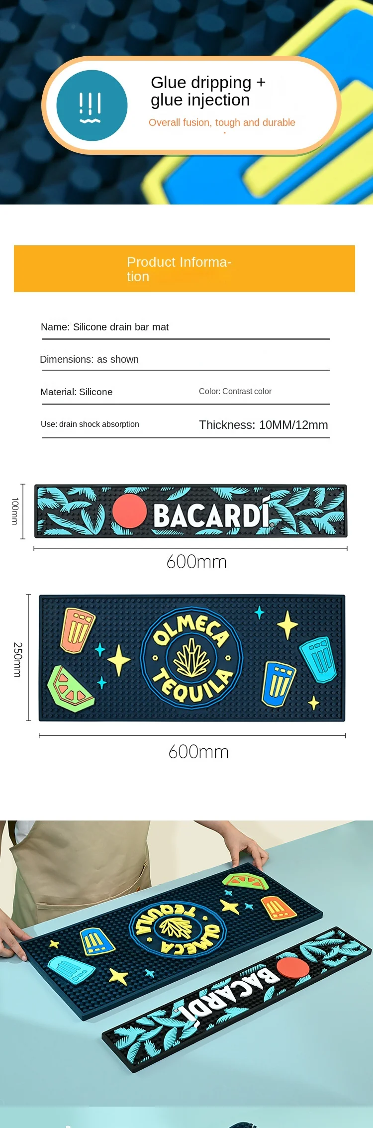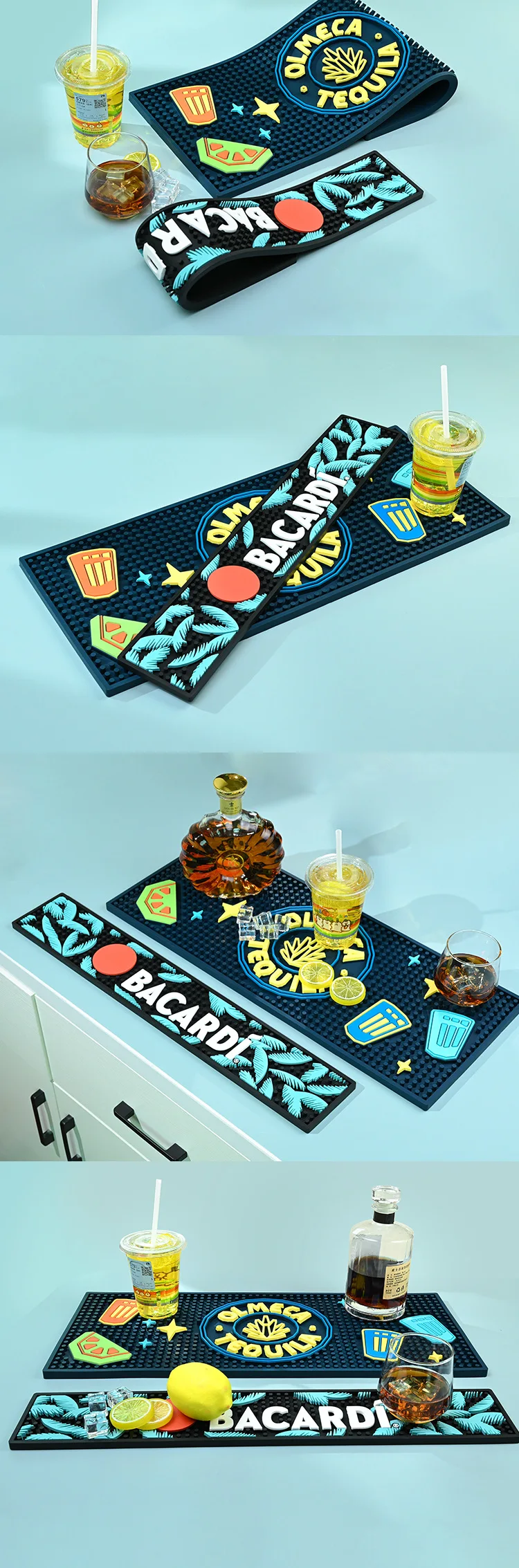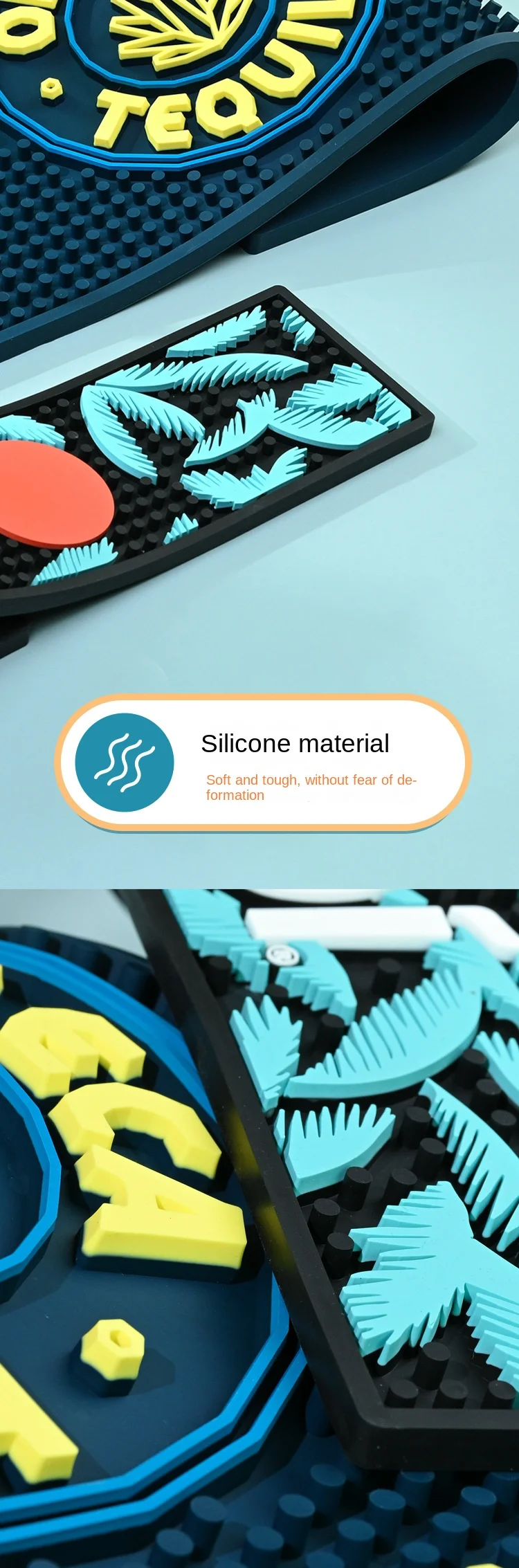Factory Price Custom Blue Soft Silicone Bar Mat With Custom Logo Ideal For Alcohol Promotions |