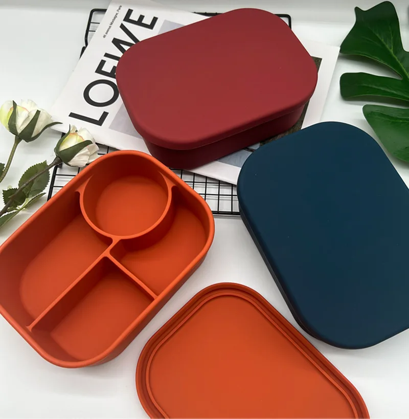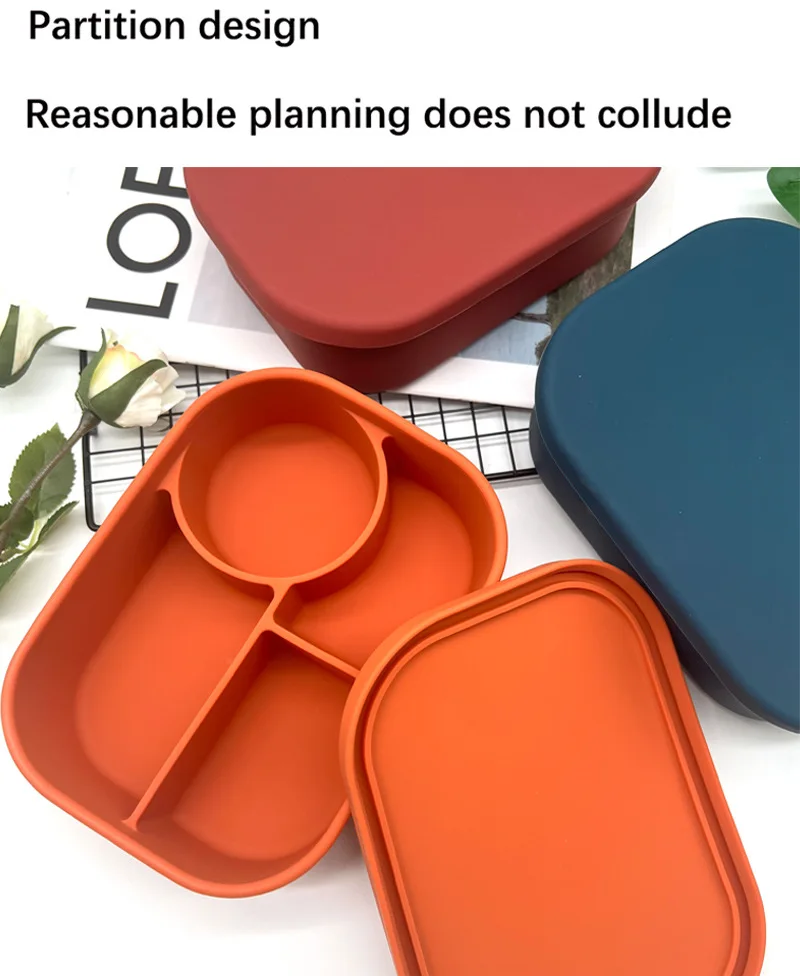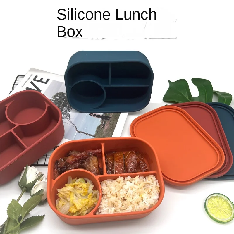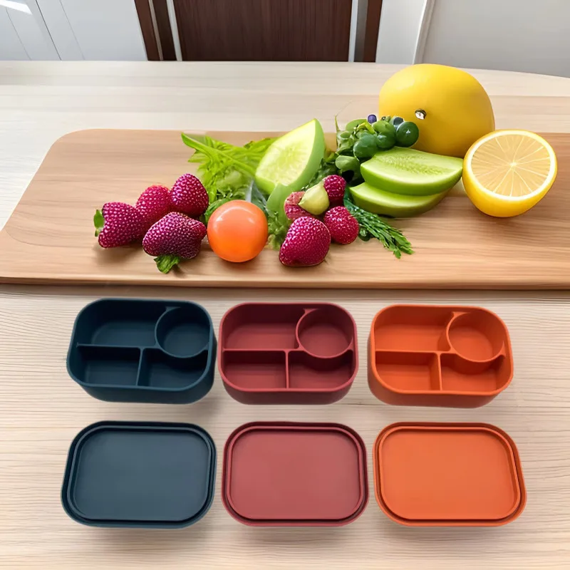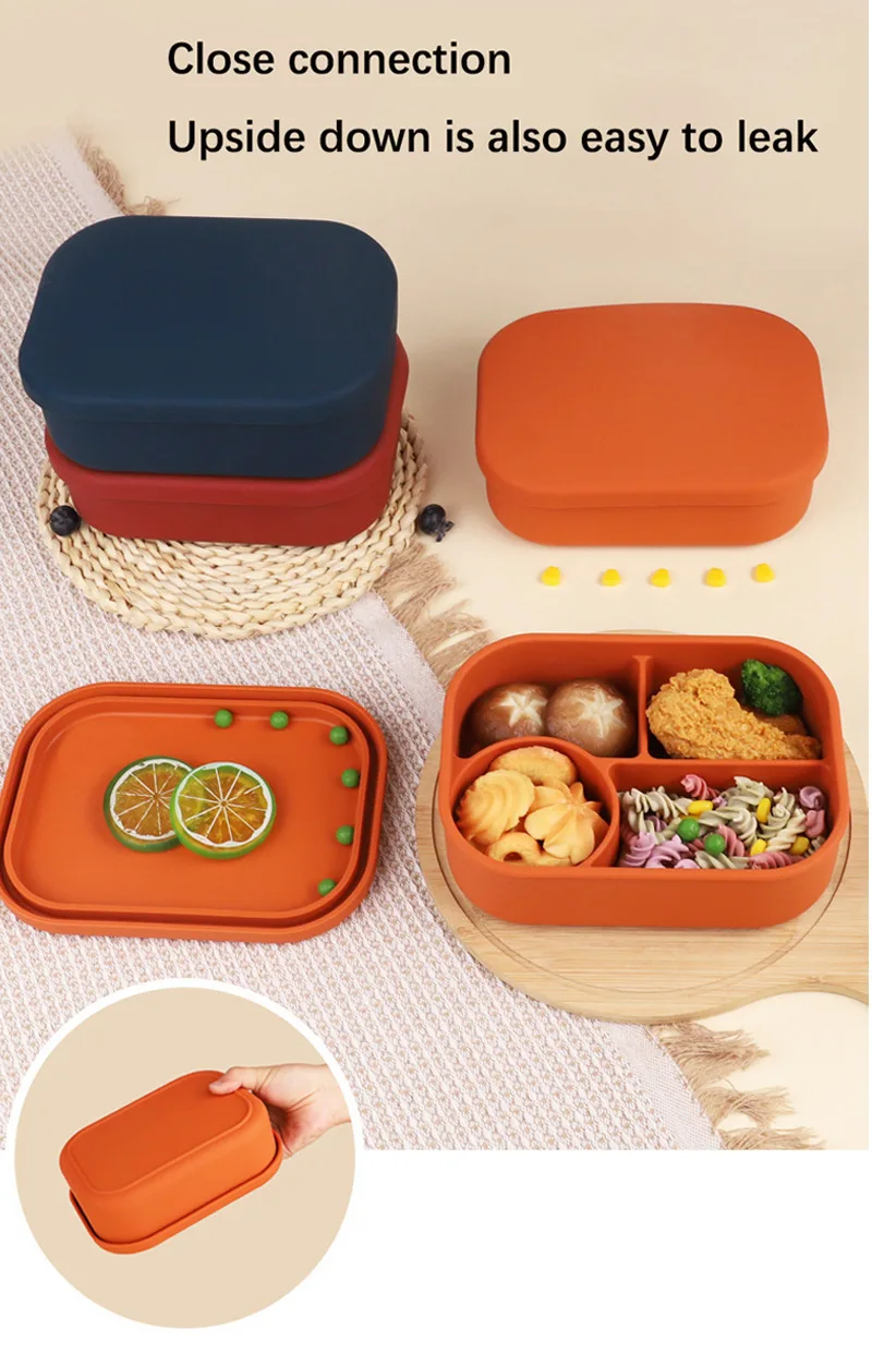 Hot Lunchbox Kids Bpa Free Compartment Food Storage Box Kids Sillicon Bento Lunch Box With Lid |