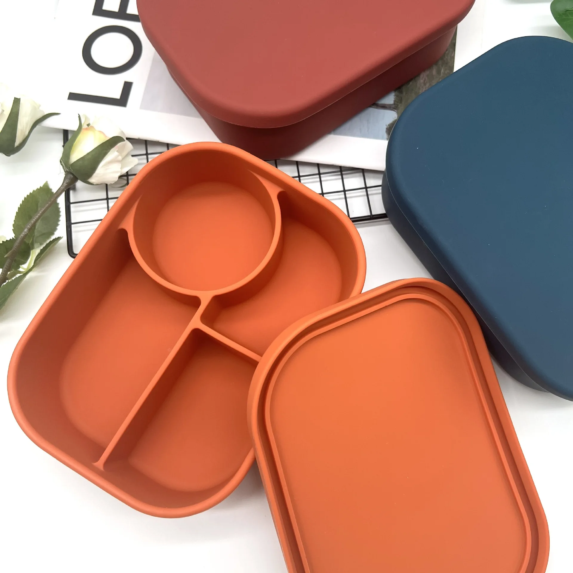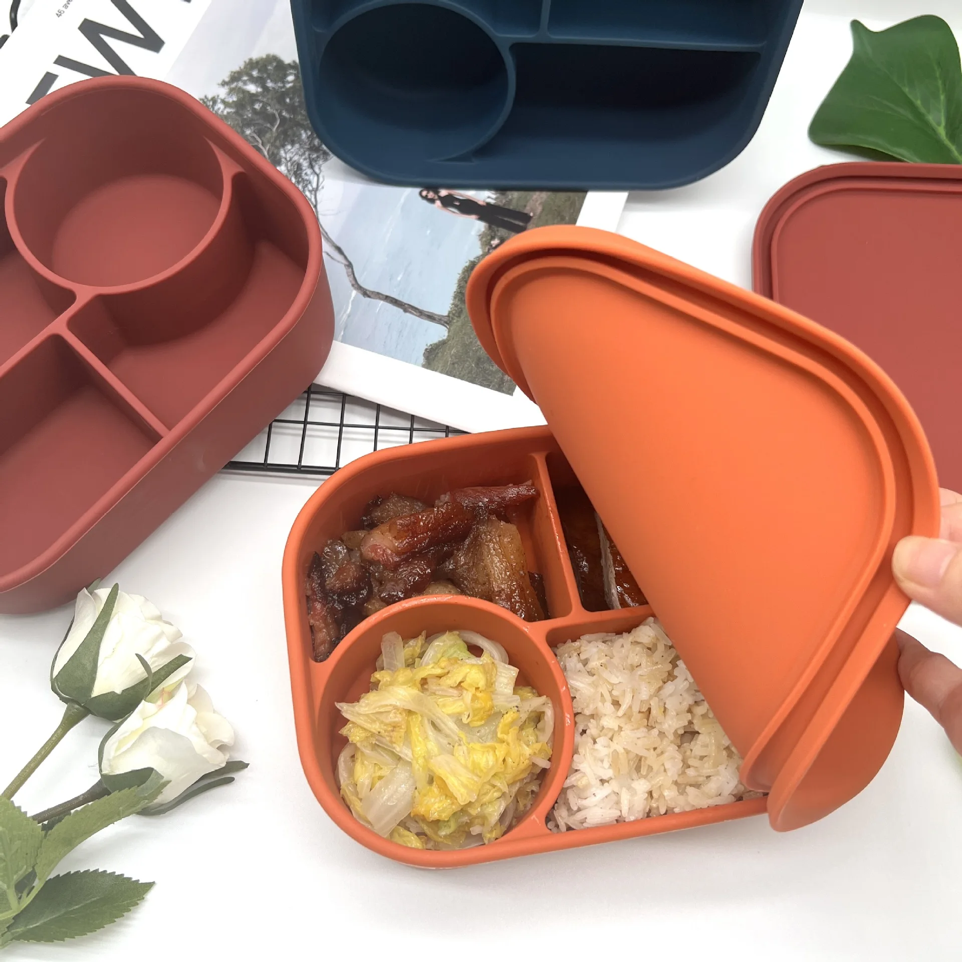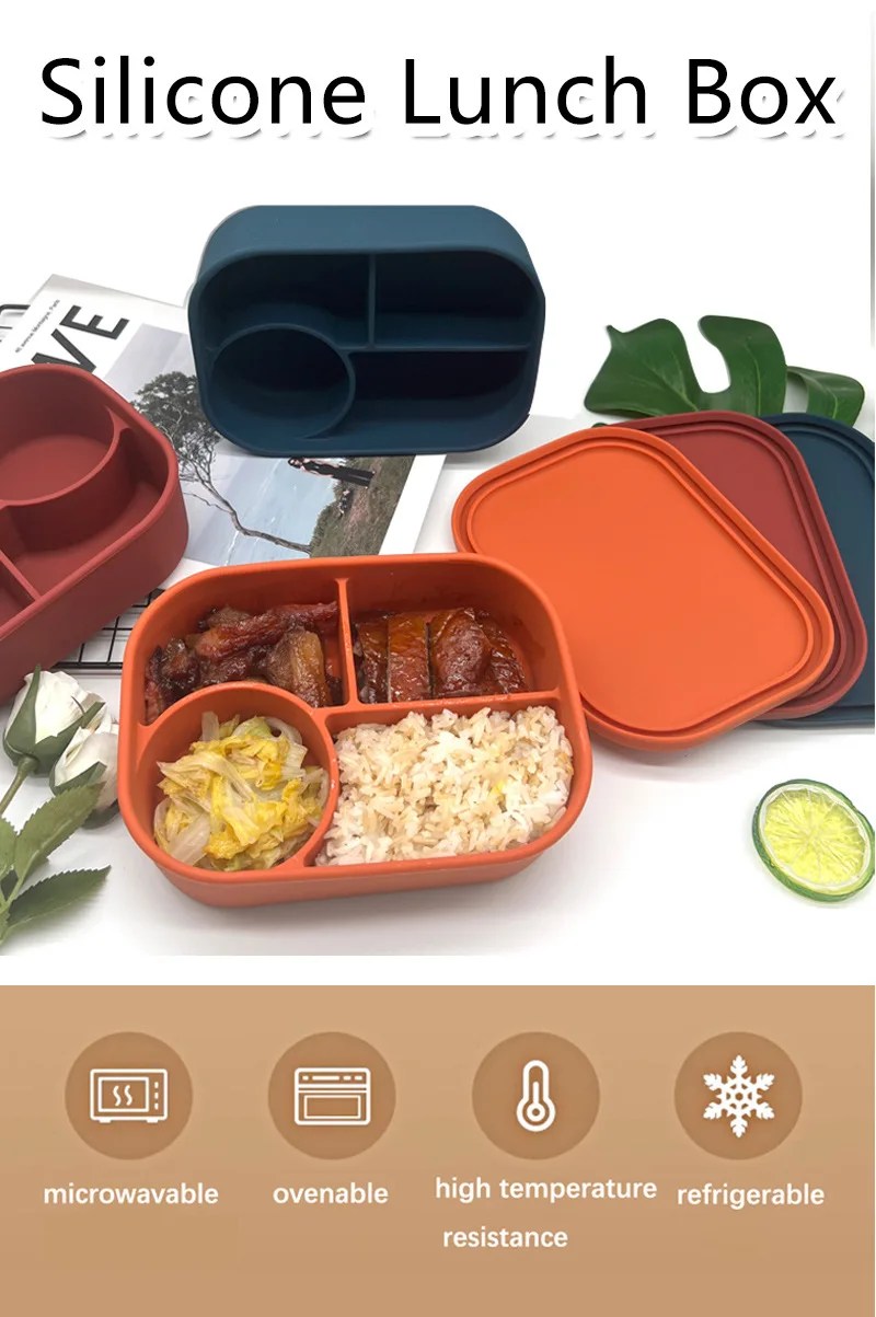 Hot Lunchbox Kids Bpa Free Compartment Food Storage Box Kids Sillicon Bento Lunch Box With Lid |